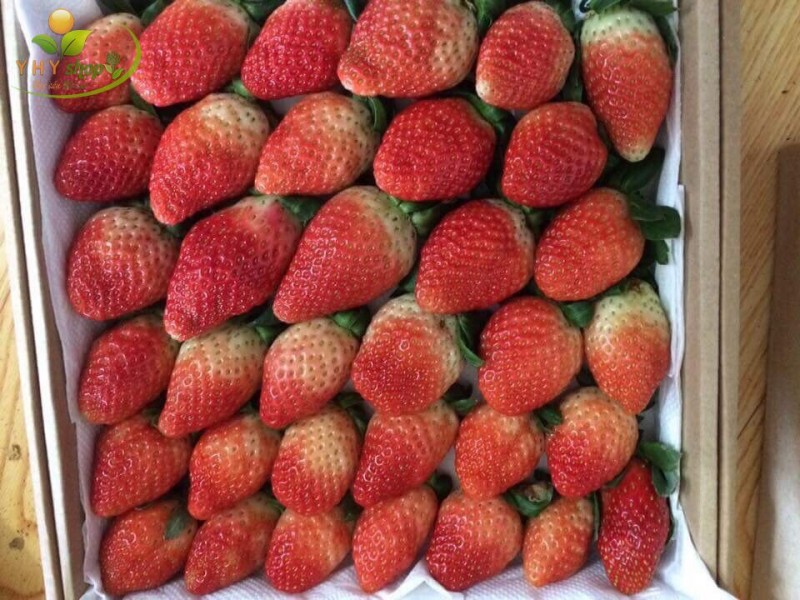 - Giống Nhật Bản: Dâu này cũng được trồng theo phương pháp thủy canh, dâu cam kết không dùng thuốc trừ sâu, có thể ăn ngay tại vườn. Quả dâu to, ngọt, nhìn rất bắt mắt. Giá loại này dao động 290.000-380.000.